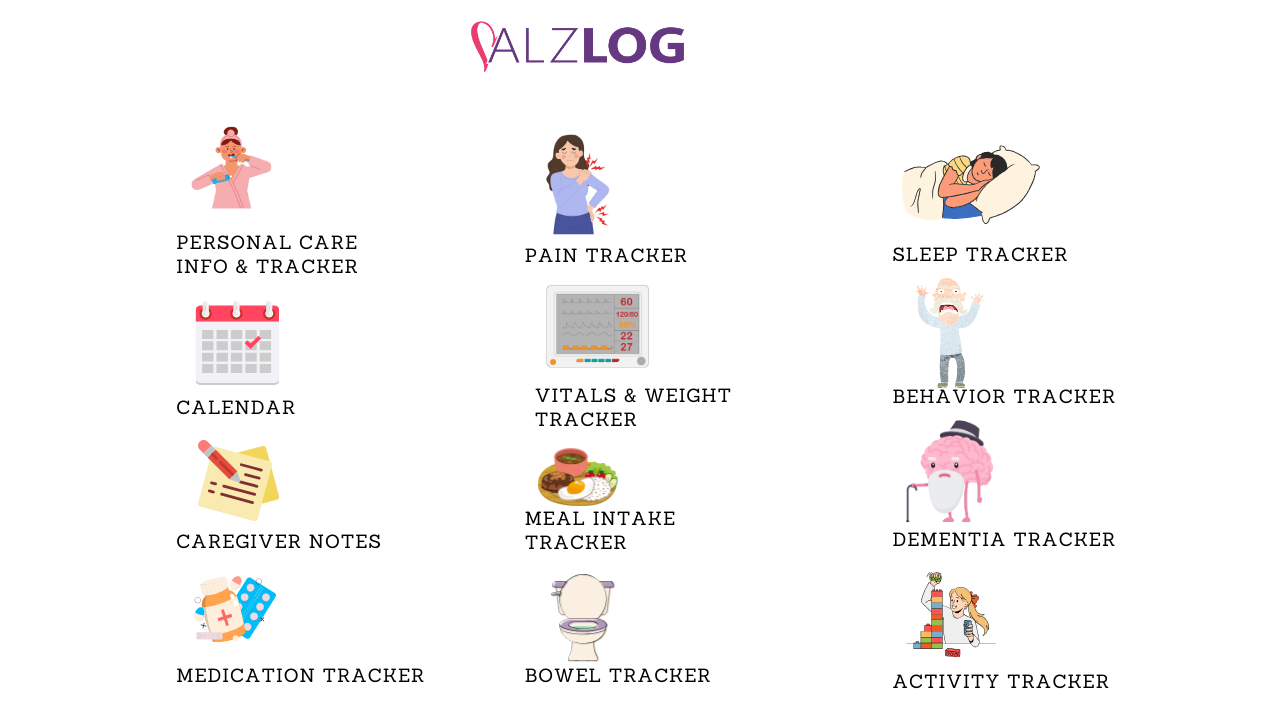 Whether you choose the app, printable download, or 3-ring binder, Alzlog keeps caregiving simple and organized.